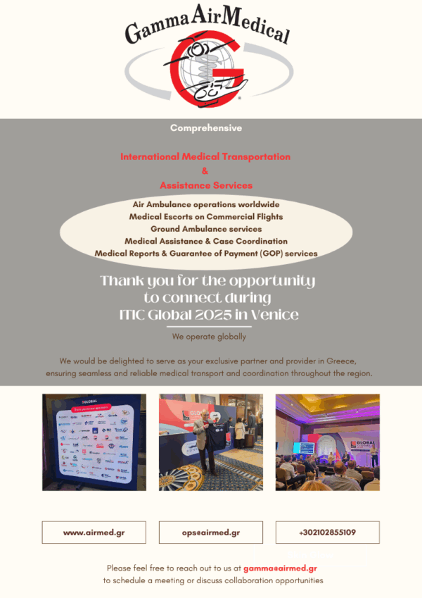 View Larger Image ITIC Global 2025 in Venice By gamma|2025-12-16T13:21:01+03:00November 2nd, 2025|Blog|0 Comments Share This Story, Choose Your Platform! FacebookXRedditLinkedInTumblrPinterestVkEmail About the Author: gamma Related Posts Gamma Air Medical at ITIC Global 2025 Gallery Gamma Air Medical at ITIC Global 2025 Gamma Air Medical at the conference of Hellenic Aviation Society (HAS) Gallery Gamma Air Medical at the conference of Hellenic Aviation Society (HAS) Ground Ambulance Summer 2025 Campaign Gallery Ground Ambulance Summer 2025 Campaign Summer 2025 Campaign Gallery Summer 2025 Campaign Gamma Air Medical presentation at the ITIC Global in Vienna Gallery Gamma Air Medical presentation at the ITIC Global in Vienna Leave A Comment Cancel replyComment Δ
